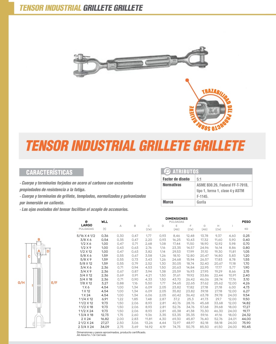 TENSOR GRILLETE – GRILLETE 2″ X 24″ | GORILA